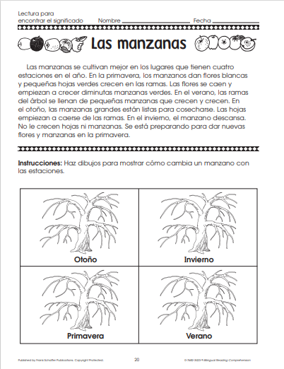Build better readers in bilingual classrooms! Bilingual Reading Comprehension is a valuable resource for bilingual, two-way immersion in third-grade classrooms. This book provides bilingual reading practice for students through identical activities featured in English and Spanish, allowing the teacher to tailor lessons to a dual-language classroom. Fiction and nonfiction activities reinforce essential reading skills, such as finding the main idea, identifying supporting details, recognizing story elements, and learning new vocabulary.