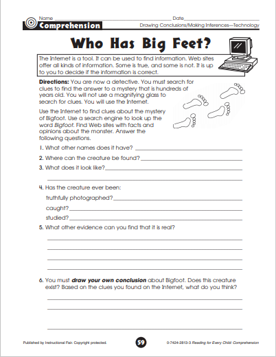 Use the pages and activities as “Comprehension Strategy Units” with your students.